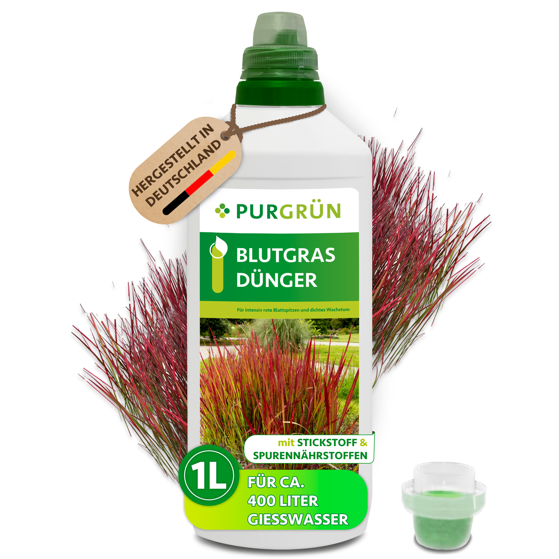 Der Purgrün Blutgras-Dünger ist speziell formuliert, um Blutgras im Freiland und im Pflanzkübel optimal mit Nährstoffen zu versorgen. Die Formel mit hohem Stickstoffgehalt bietet alle essenziellen Haupt- und Spurennährstoffe, die für das kräftige Wachstum und die Vitalität von Blutgras notwendig sind.