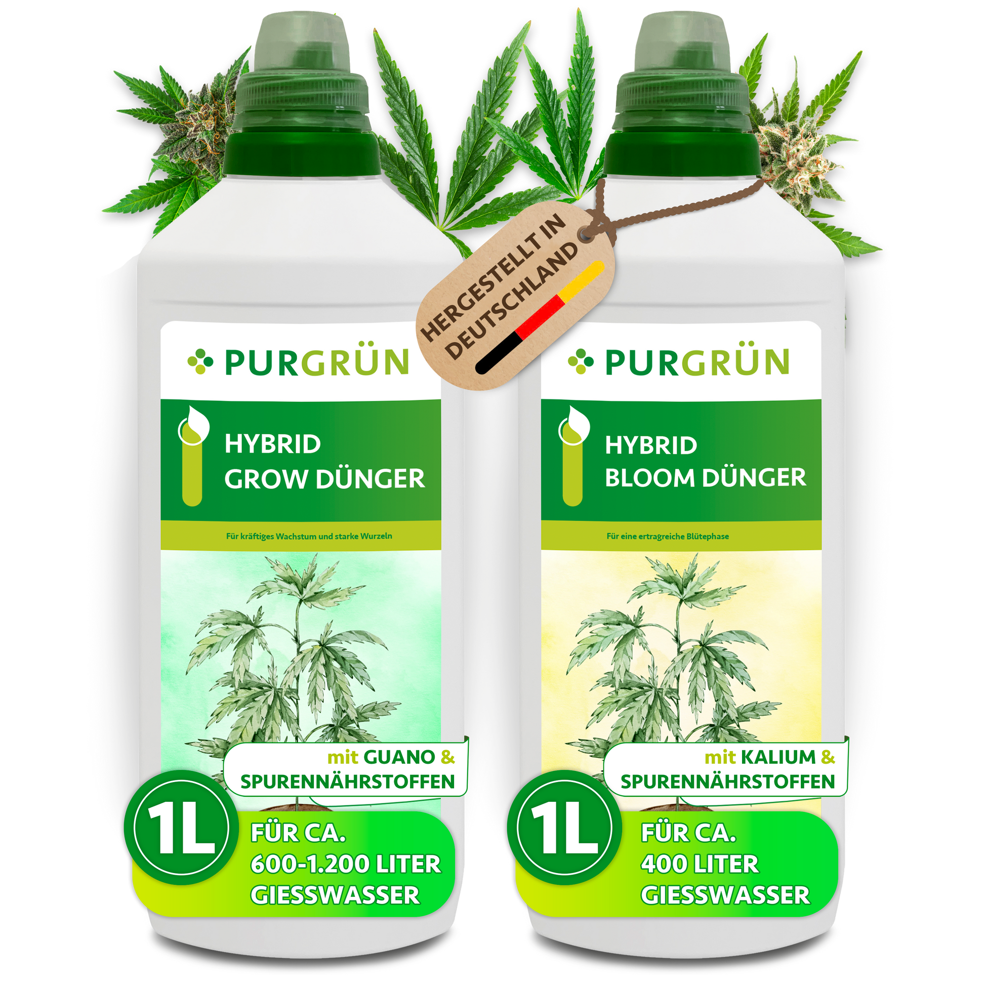 Unser speziell zusammengestelltes Purgrün Hybrid-Dünger-Set ist Ihr unverzichtbarer Begleiter für eine optimale Pflanzenentwicklung von der Pflanzung bis zur Ernte. Das Set besteht aus unserem Hybrid-Grow-Dünger für die entscheidende Wachstumsphase und dem Hybrid-Bloom-Dünger für die anspruchsvolle Blühphase.