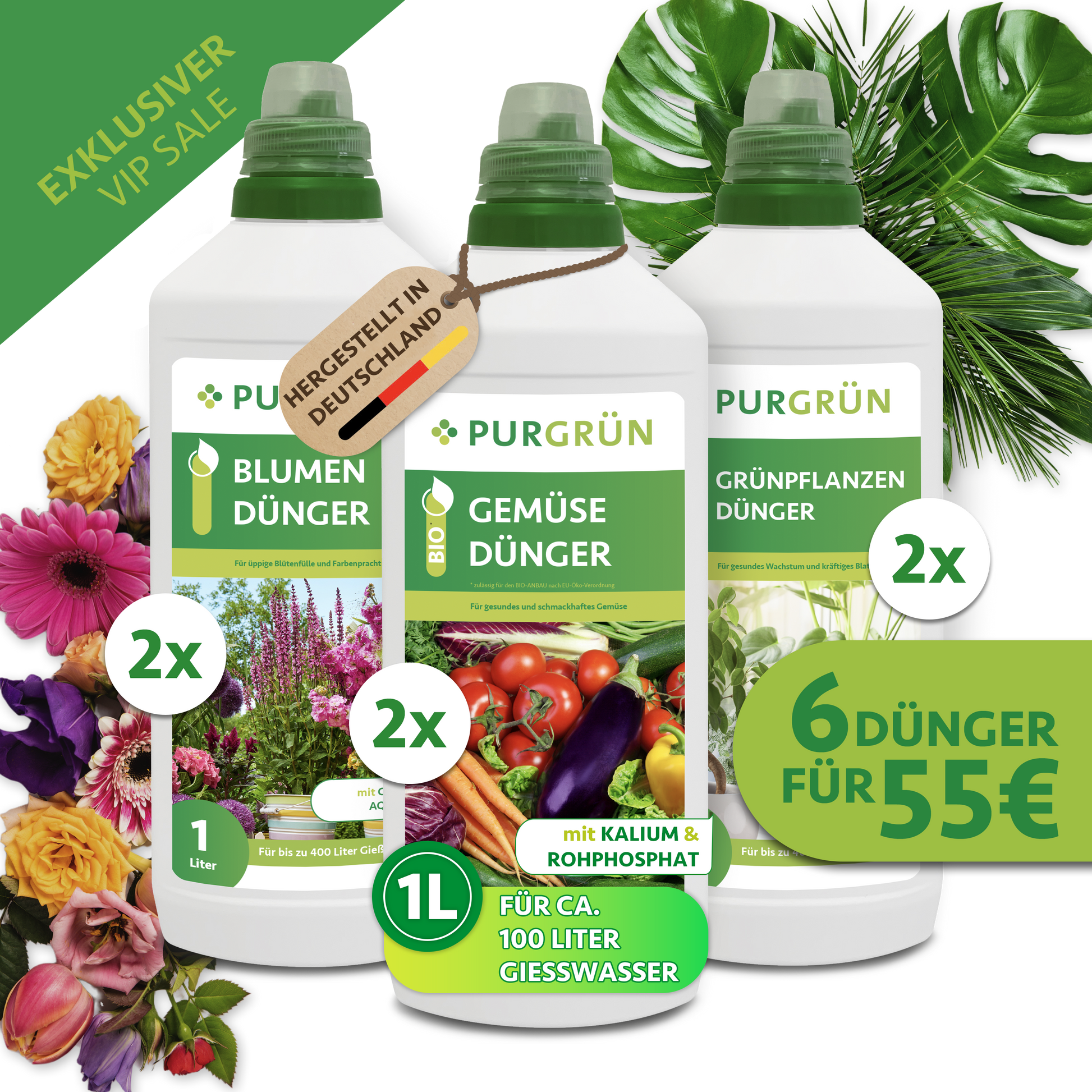 Ob als Einsteiger-Set, Vorratspaket oder Geschenk für Gartenfreunde – der Purgrün Klassiker-Mix ist vielseitig einsetzbar. Mit diesem Set hast du alles, was du brauchst, um Gemüse, Blumen und Grünpflanzen rundum zu pflegen – in bewährter Purgrün-Qualität.