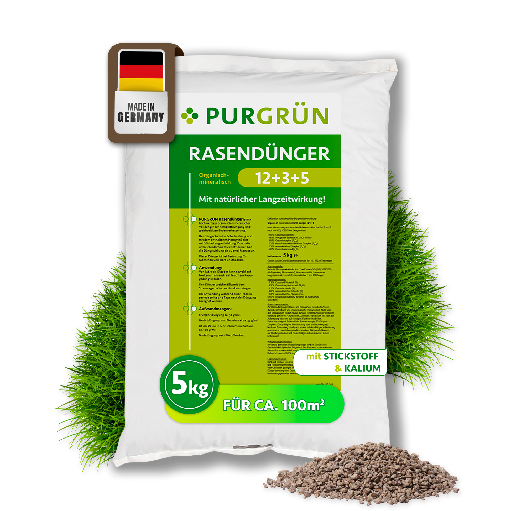 Es gibt viele verschiedene Rasendünger auf dem Markt, und die Wahl des besten hängt von den individuellen Bedürfnissen und Vorlieben des Gärtners ab. Organisch-mineralische Rasendünger wie unser Purgrün Rasendünger sind für die meisten Rasenflächen gut geeignet. Er enthält sowohl schnell wirkende, mineralische Bestandteile als auch organisches Material, das den Boden aufwertet und die Humusbildung anregt.